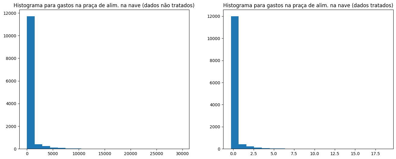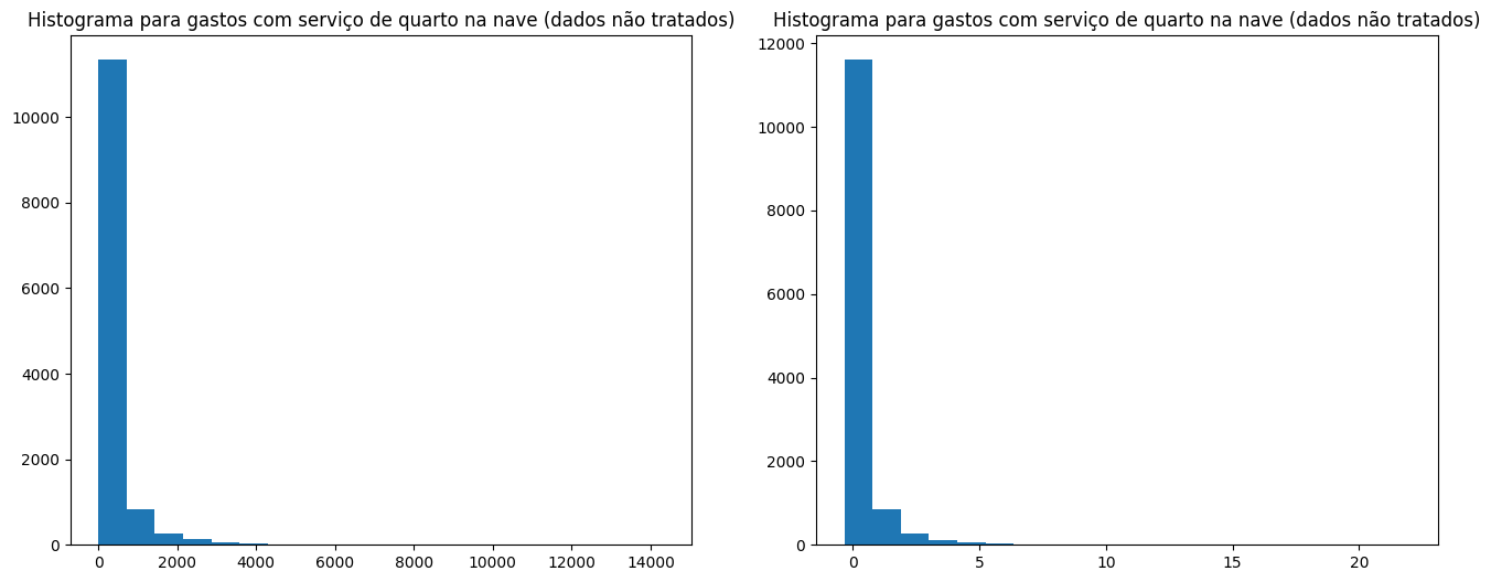 Em seguida, temos a comparação para duas variáveis semelhantes, que abordam os gastos na praça de alimentação da nave e com serviços de quarto, respectivamente.