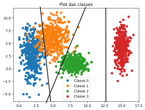 Abaixo segue uma representação visual de como as linhas poderiam separar as classes.