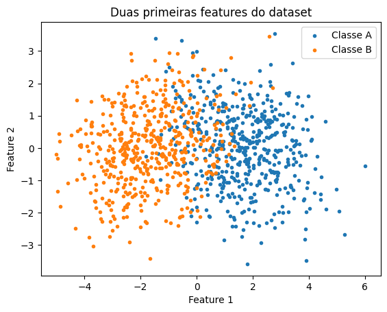 De acordo com a imagem, observa-se que os dados da classe B tendem mais a valores negativos, enquanto os da classes A tendem mais a valores positivos.