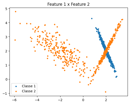 A figura 4 mostra um gráfico da distribuição das amostras em relação à 2 features.
